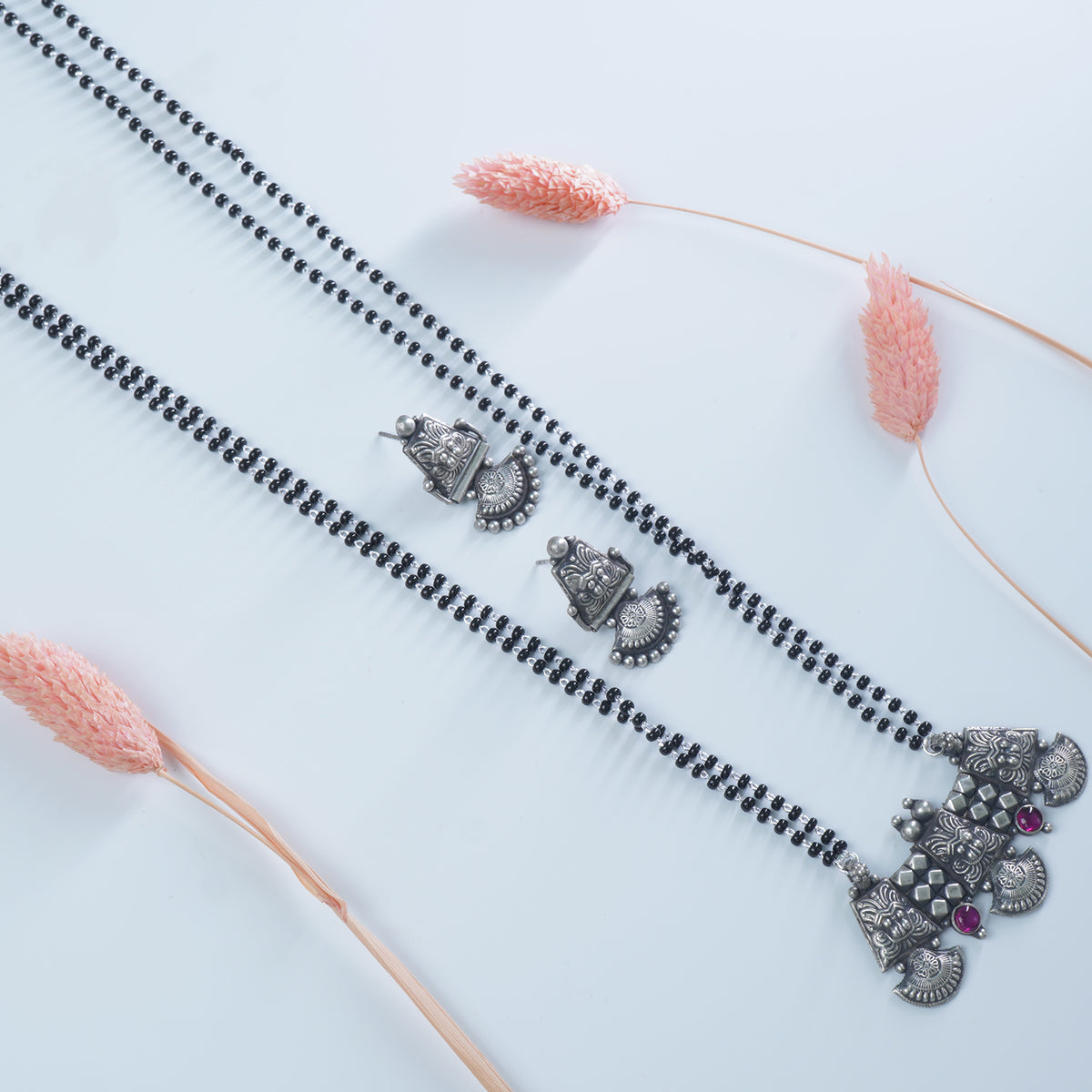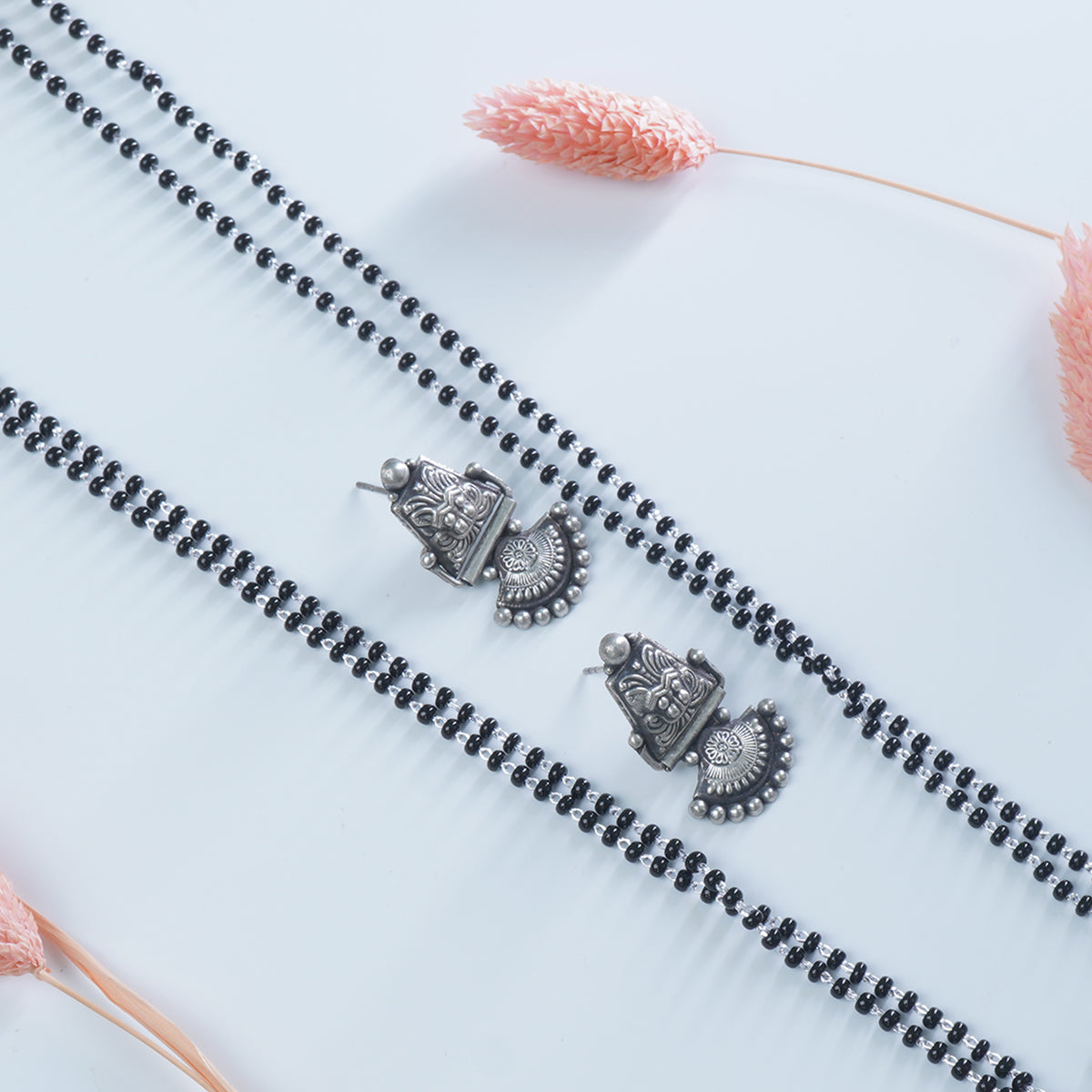 Long Silver Chain Mangalsutra 28" KirthiMukh Jointing Pendant With Earrings