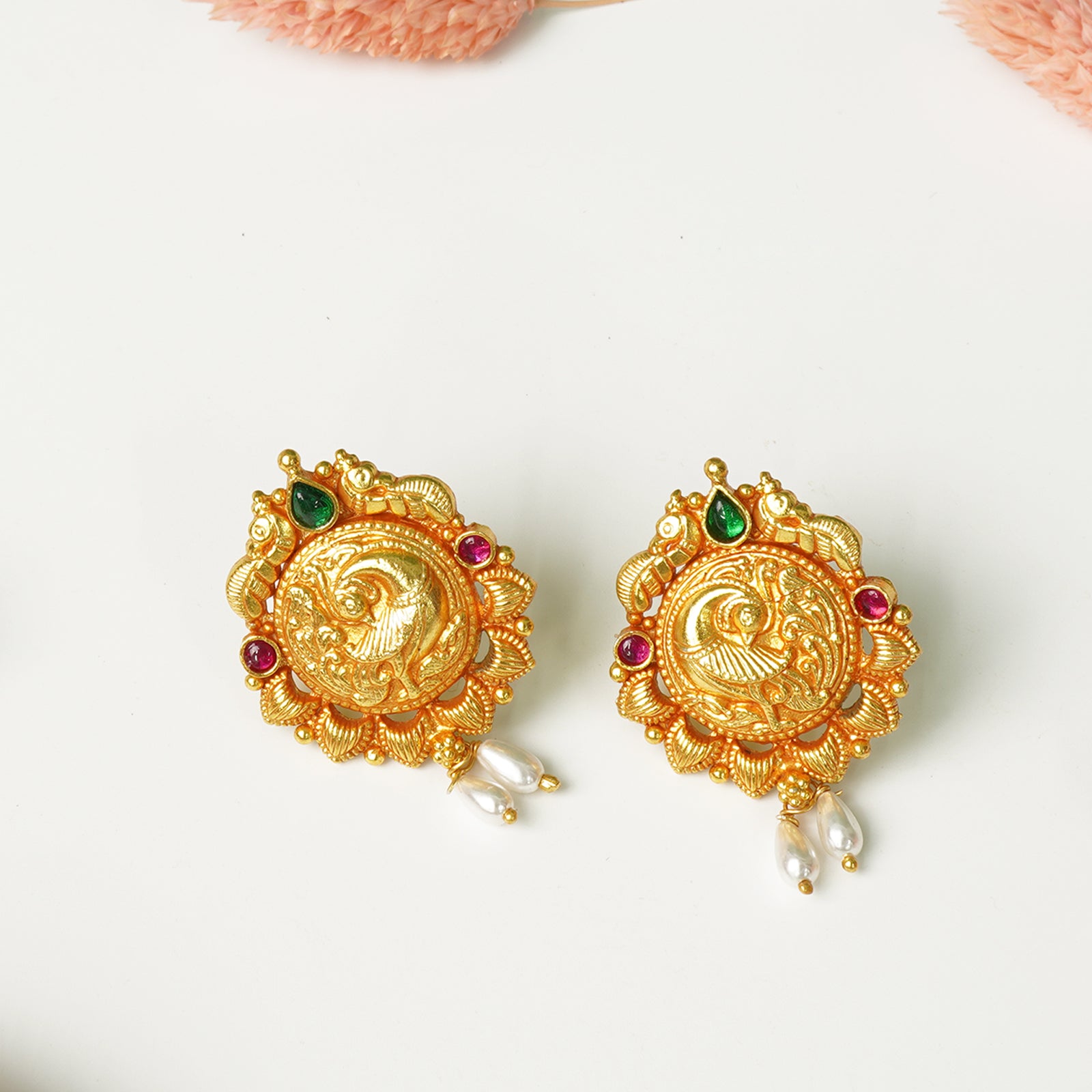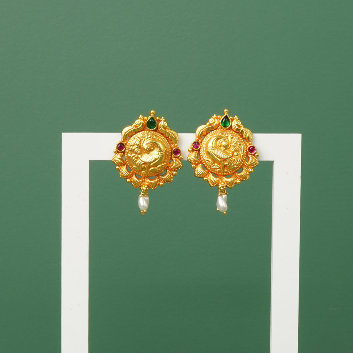 Gold Plated Gheru Finish Silver Peacock Earrings