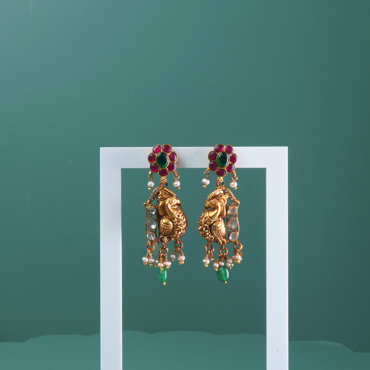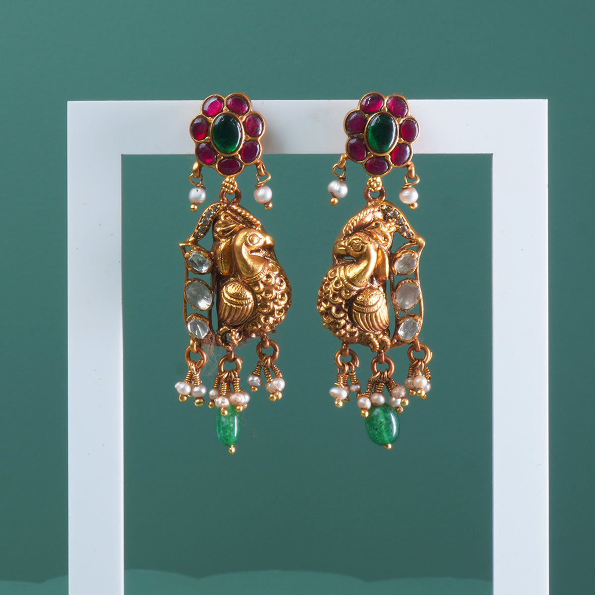 Silver Antique Gold Plated Kemp Red Jadau Peacock