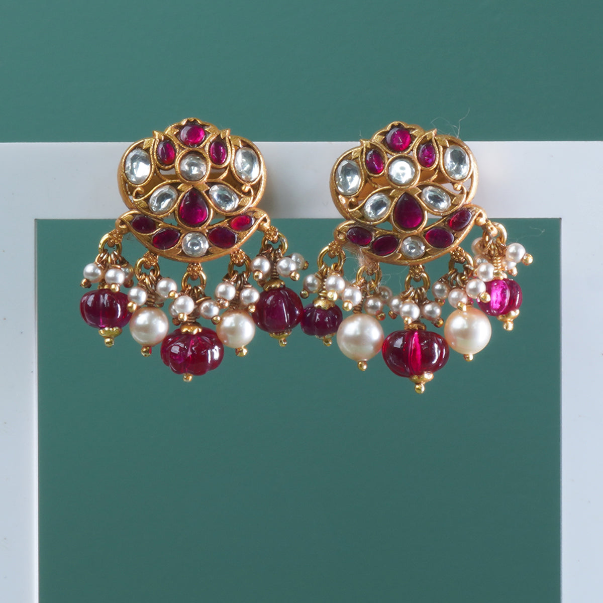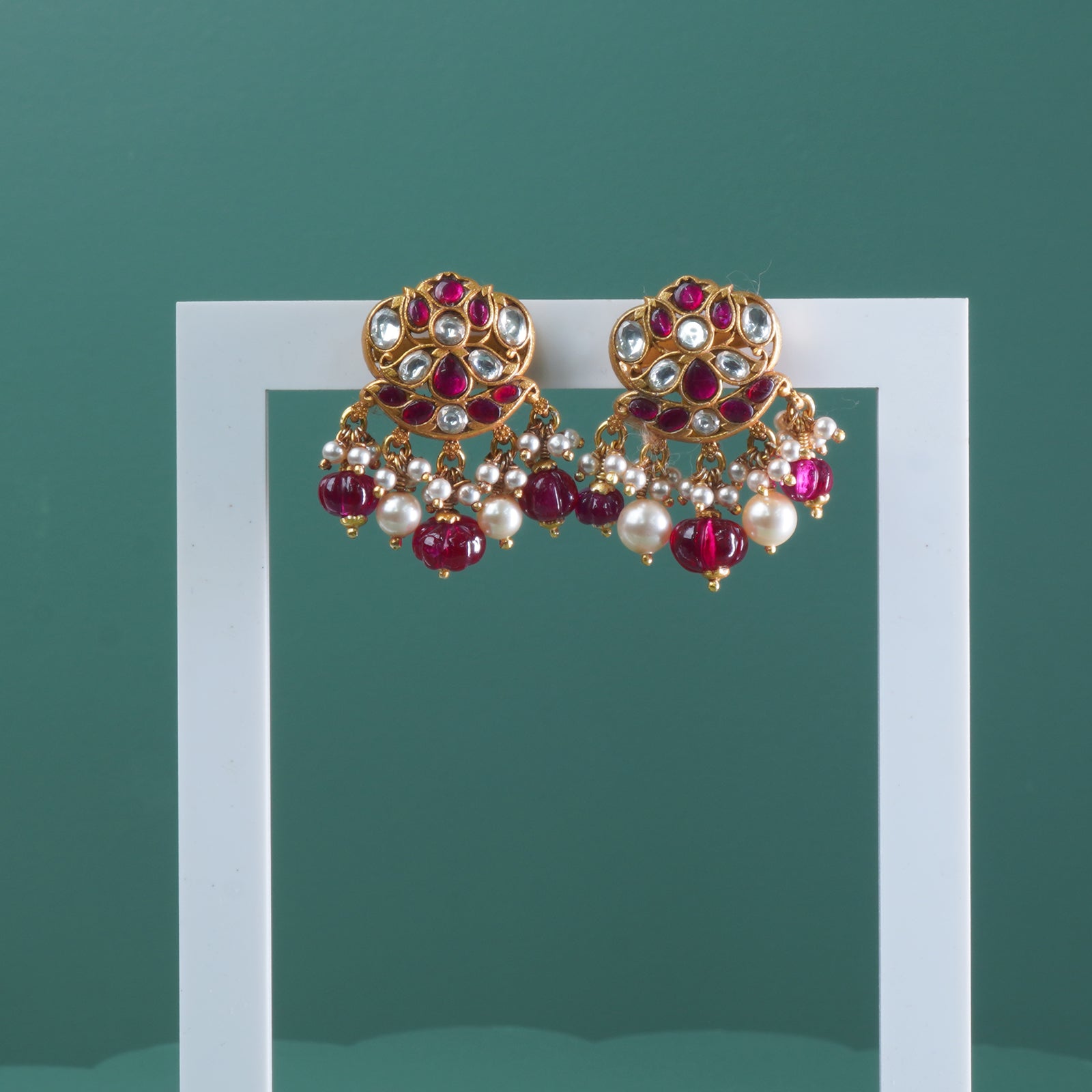 Silver Antique Gold Plated Kemp Jadau Jhumki