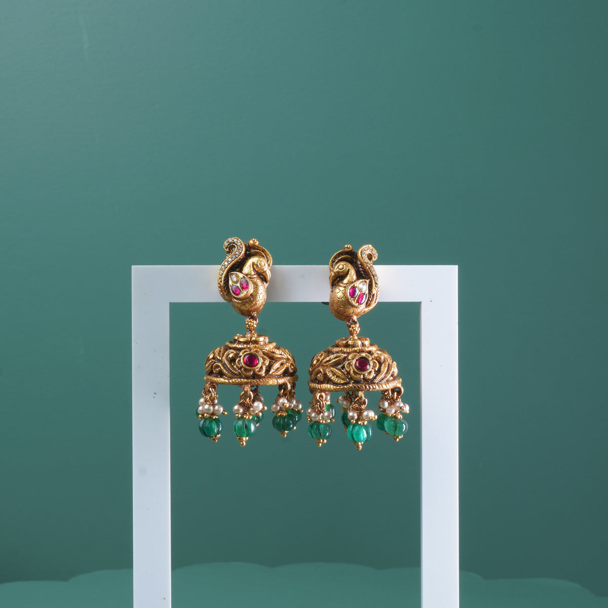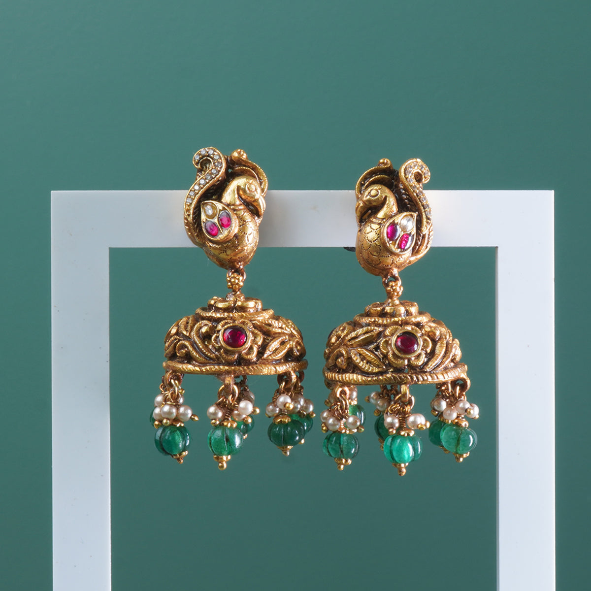Silver Antique Gold Plated Nakashi Kundan Peacock Jhumki