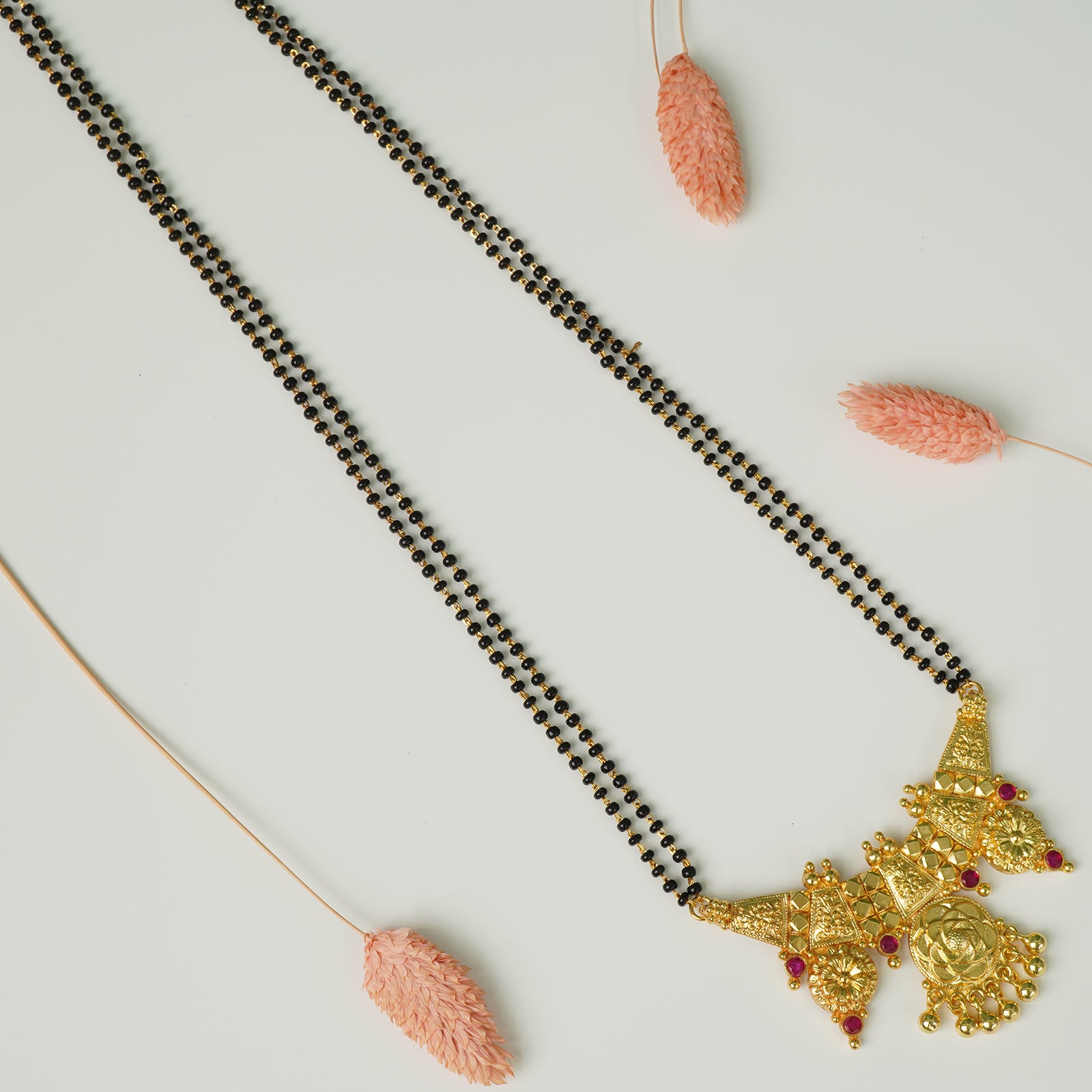 Pure 925 Silver Gold Plated Long Mangalsutra Design - Flower