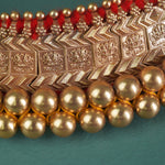 An handmade 925 silver kolhapuri thushi dipped in gold and antique gold finished. Each piece is made with utmost love and care, and the back red gadi on which the thushi sits is an excellent work of art. Match this gold plated 925 silver vajratik design with our range of antique gold plated kolhapuri saaj for a perfect look.
