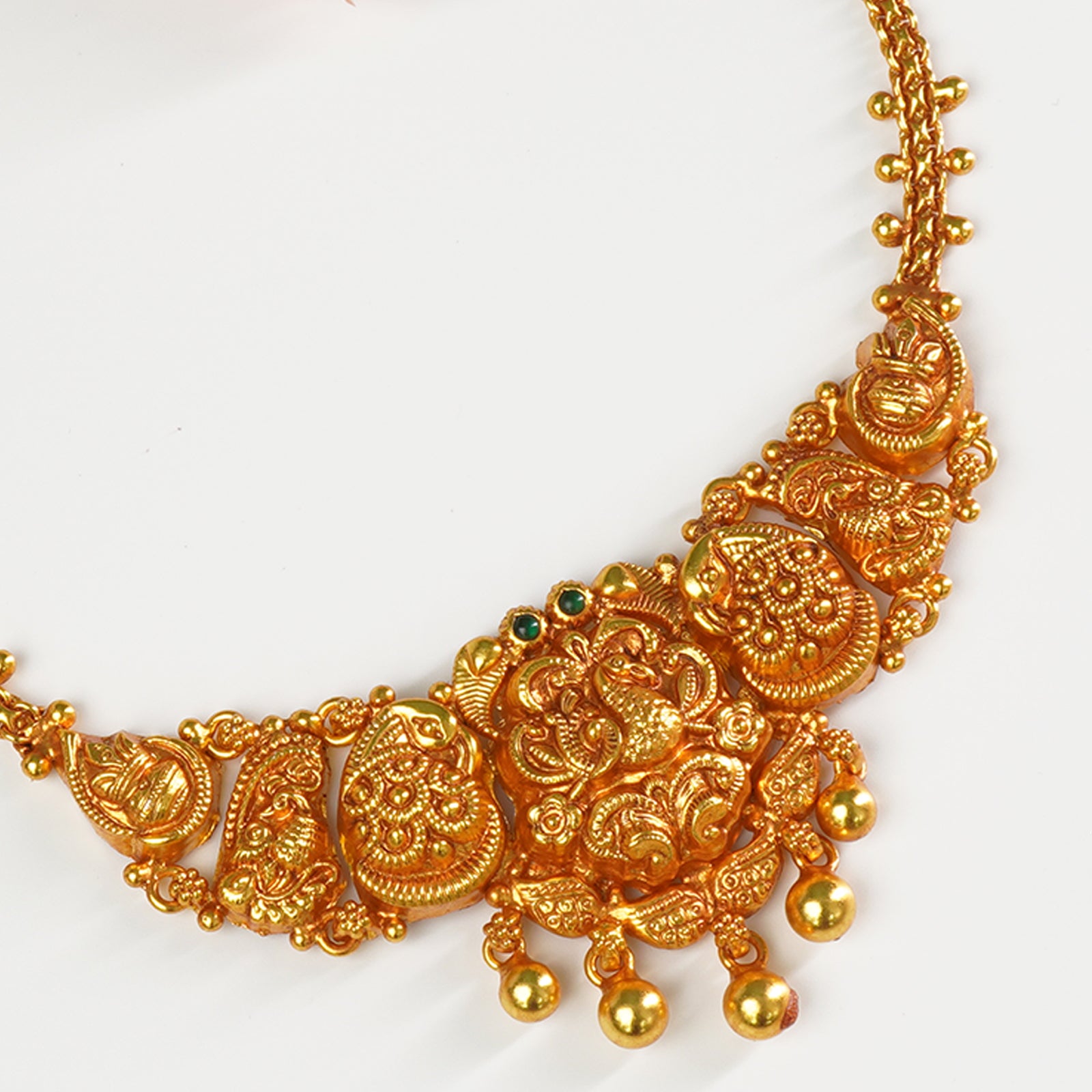 A: This necklace pairs beautifully with cotton sarees, silk sarees, kurtis, salwar suits, Indo-western outfits, and even modern dresses.