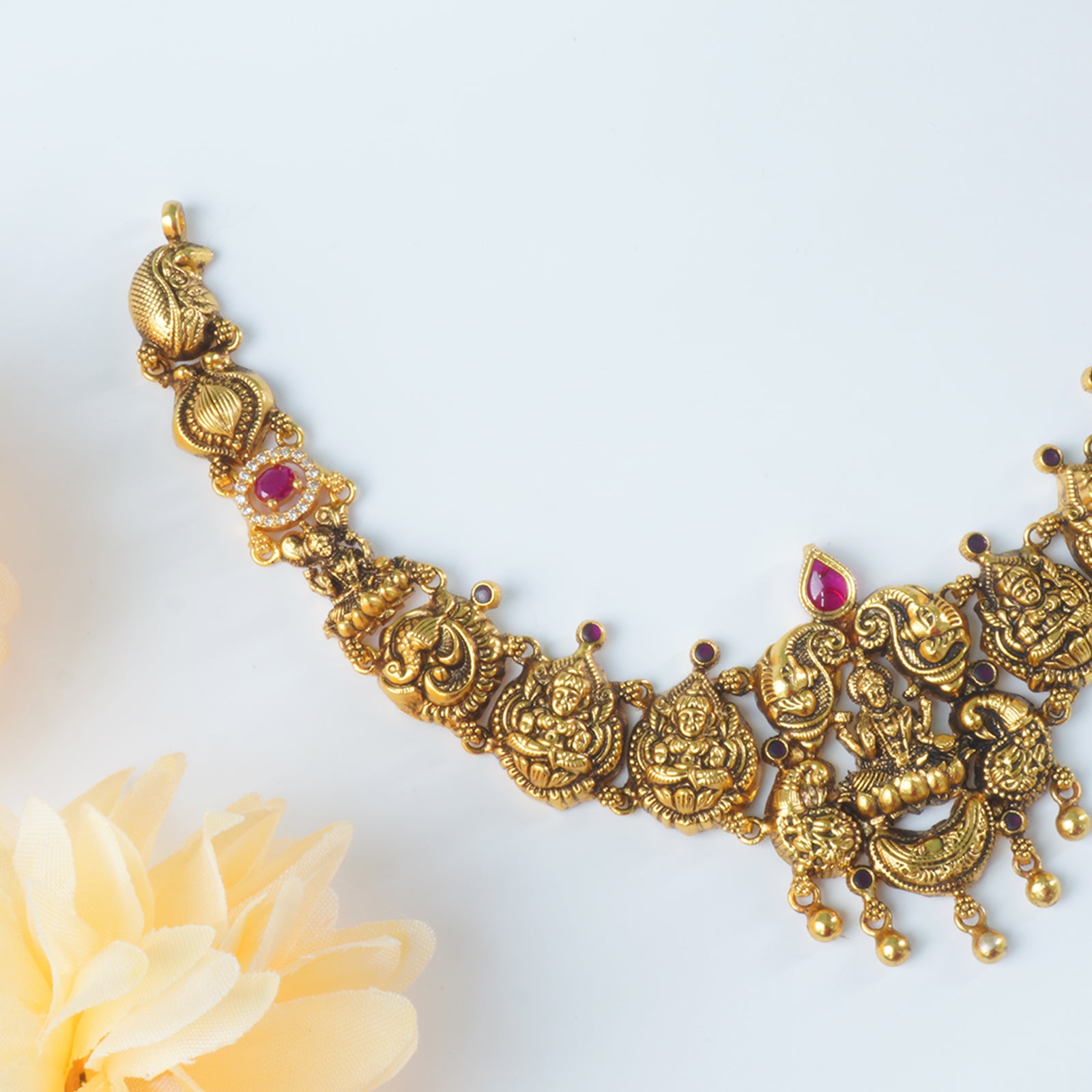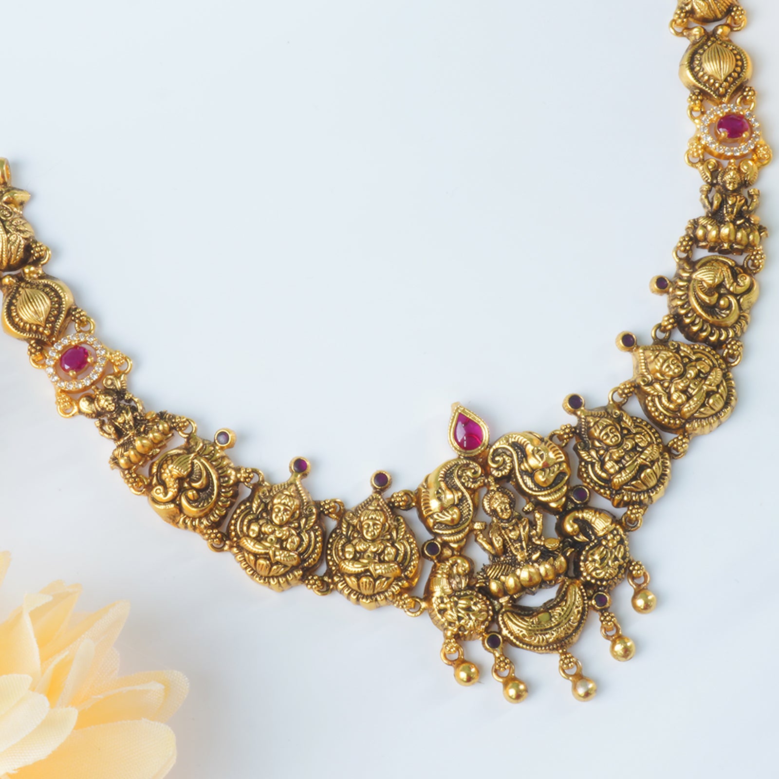 Shop Online Light Weight Silver Necklace Design With Antique Gold Plating