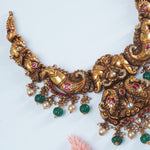 Silver Gold Plated Antique Nagas Necklace Design With Dancing Peacock & Elephant Imprints