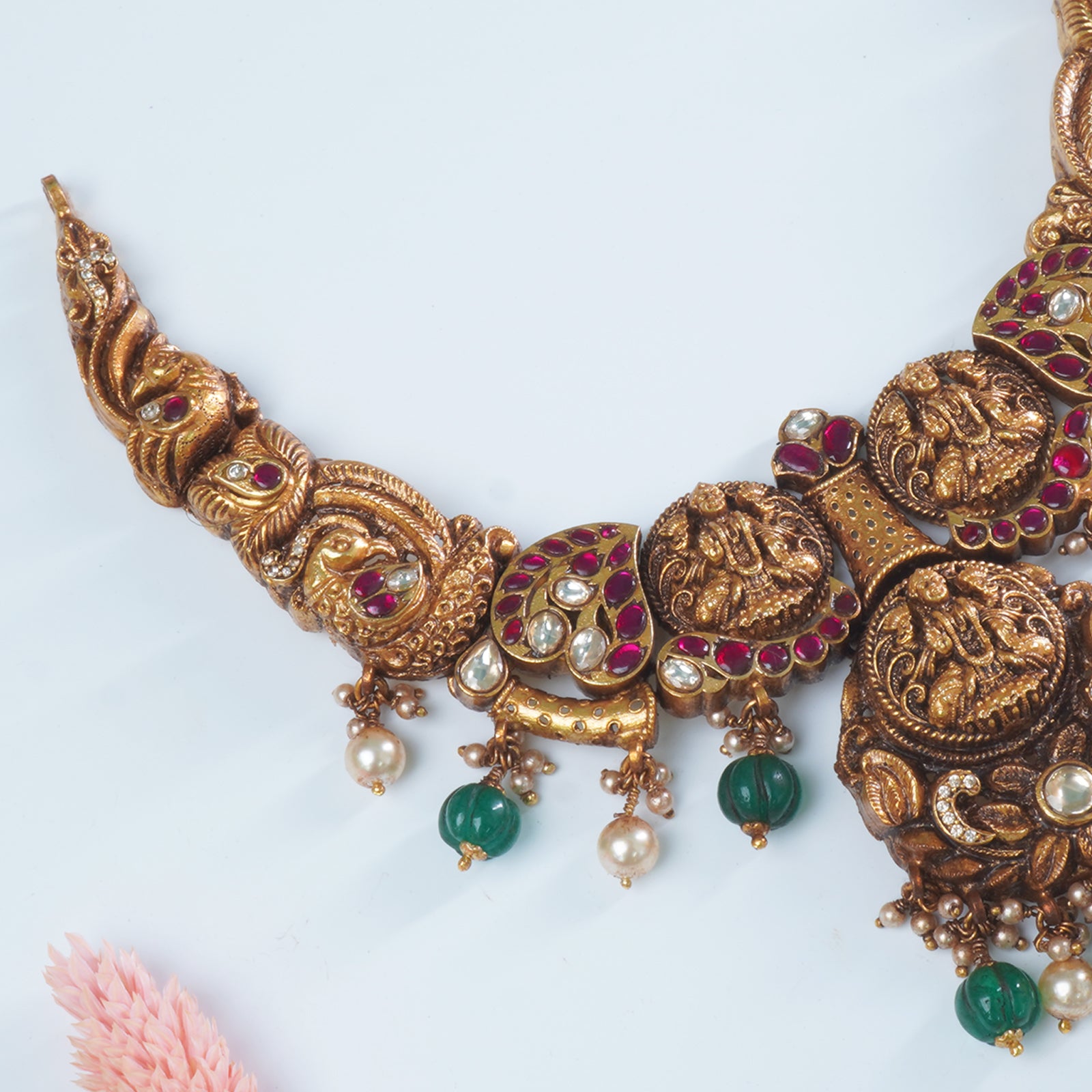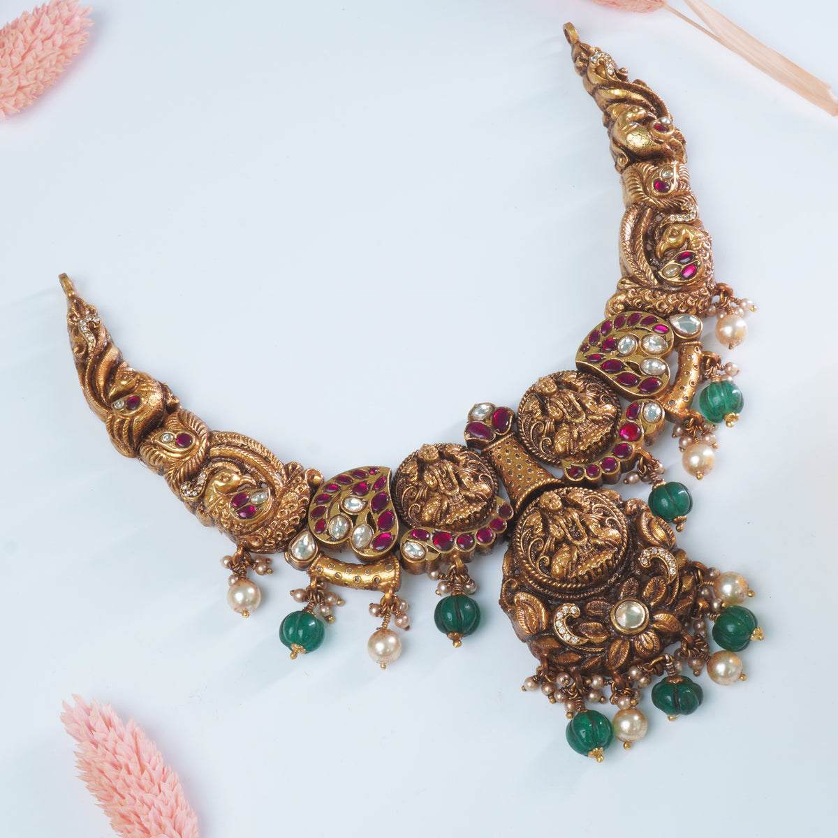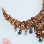 Silver Gold Plated Antique Nagas Necklace Design With Laxmi Imprints