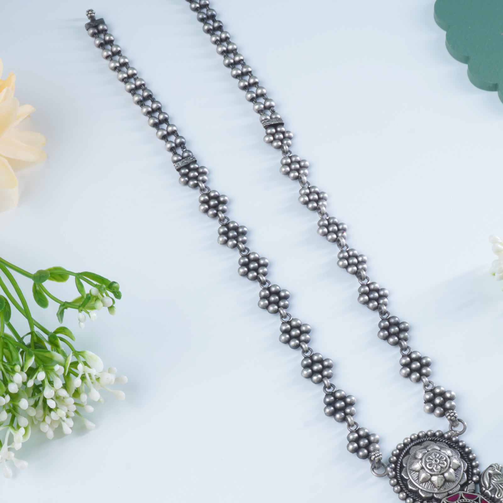 Silver Long Kudi Necklace With Kundan Worked Pendant
