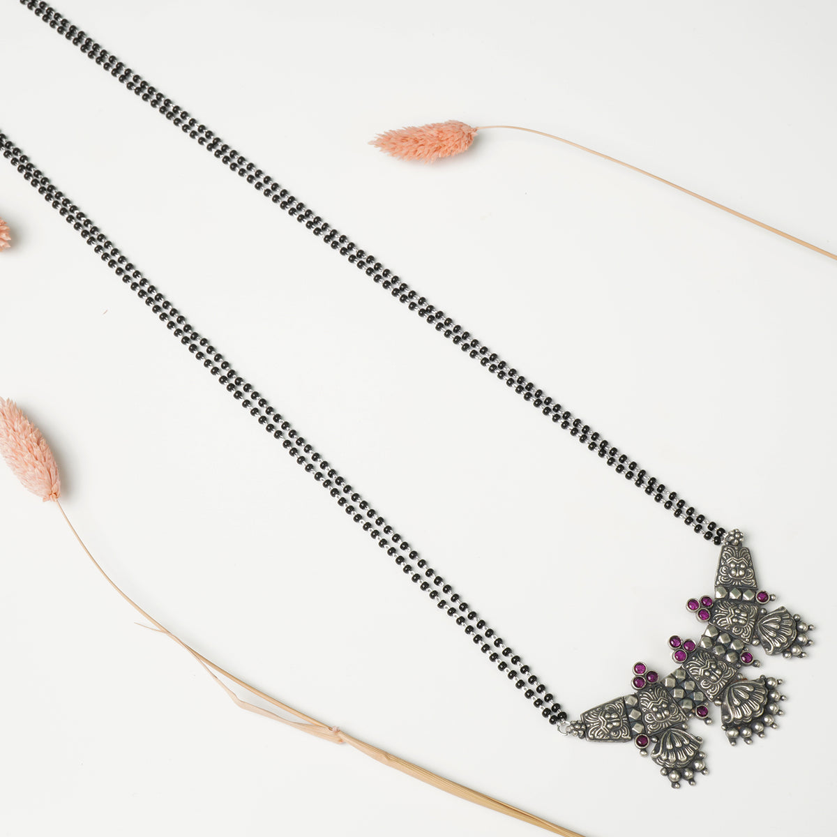 Pure 925 Silver Chain Mangalsutra Long 28 Inch Flower Piece Pendant