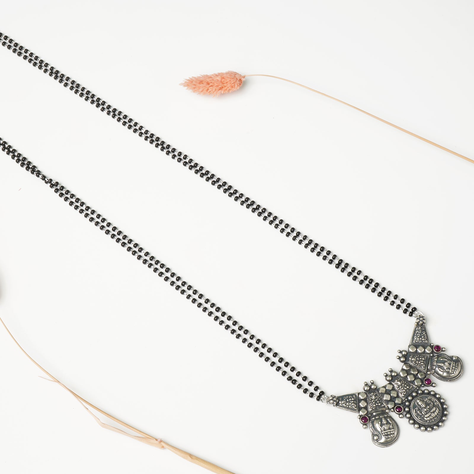 Pure 925 Silver Chain Mangalsutra Long 28 Inch Laxmi Koyri Pendant