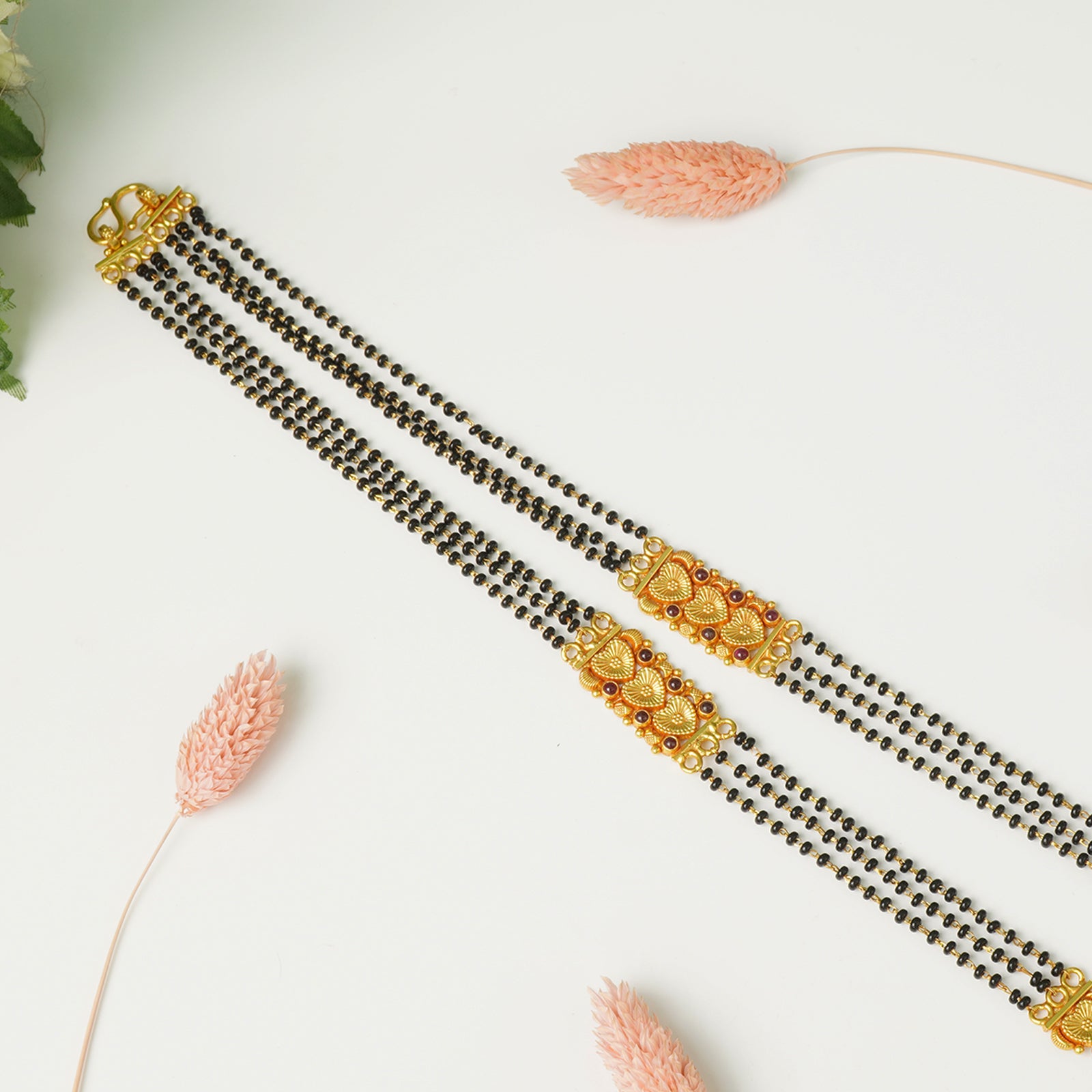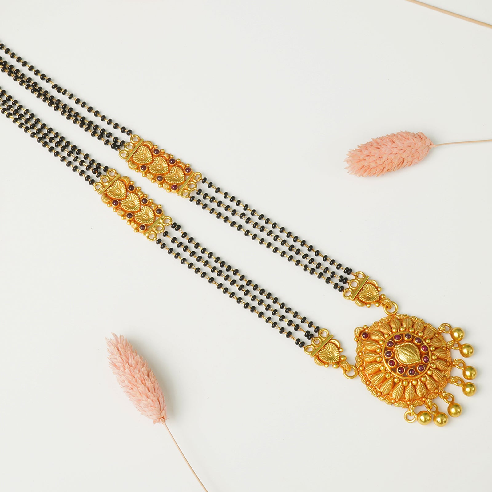 Pure 925 Silver Gheru Gold Plated Short Mangalsutra Design Circle Pendant