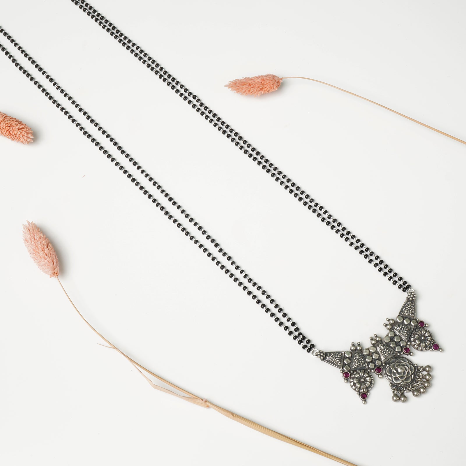 Pure 925 Silver Long Chain Mangalsutra 28 Inch Flower Piece Pendant