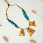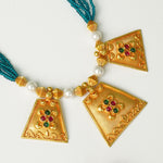 Pure 925 Silver Gheru Gold Plated Blue Beads Tribal Necklace