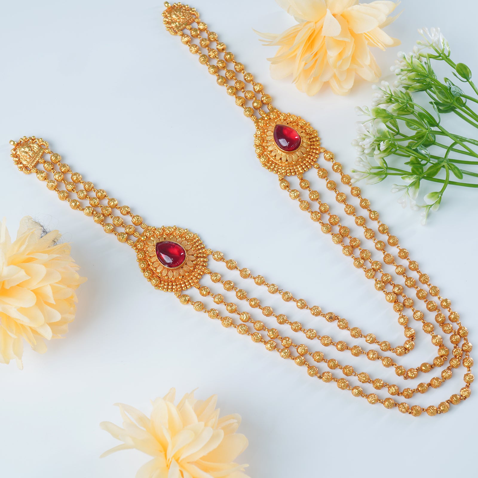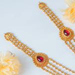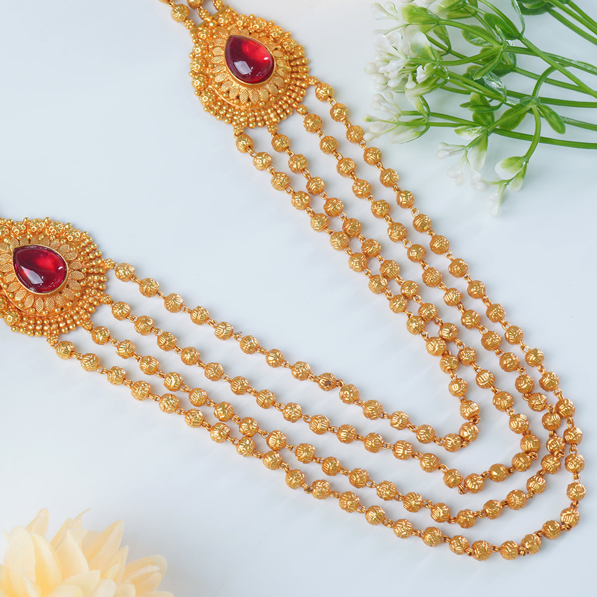 Pure Silver Gheru Finish Gold Plated 3+4 Layer Long Necklace Design