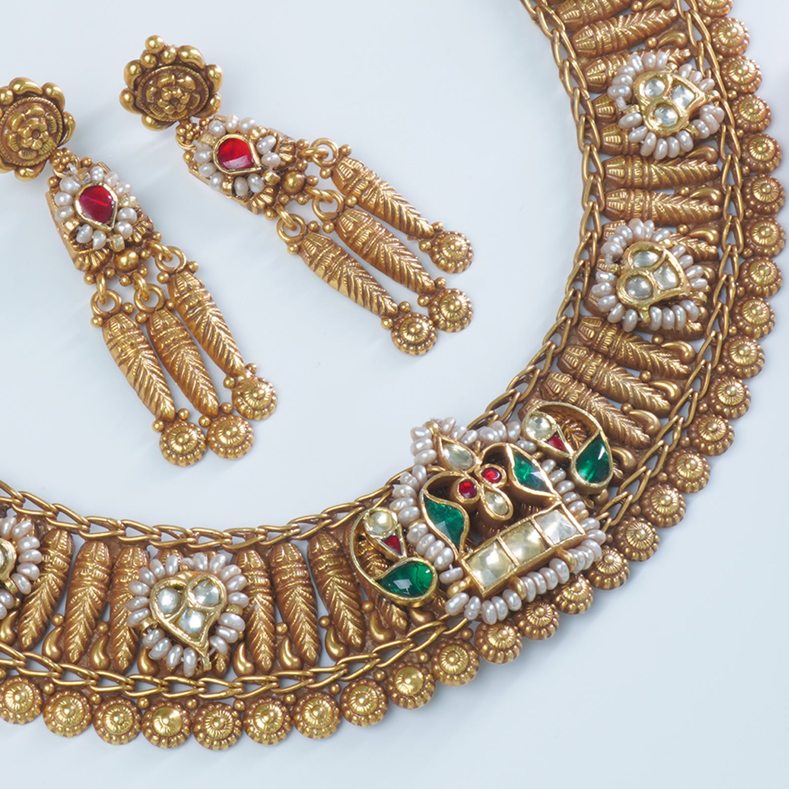 Silver Gold Plated Jadau Kundan Necklace With An Enchating Silver Chattai With Earrings