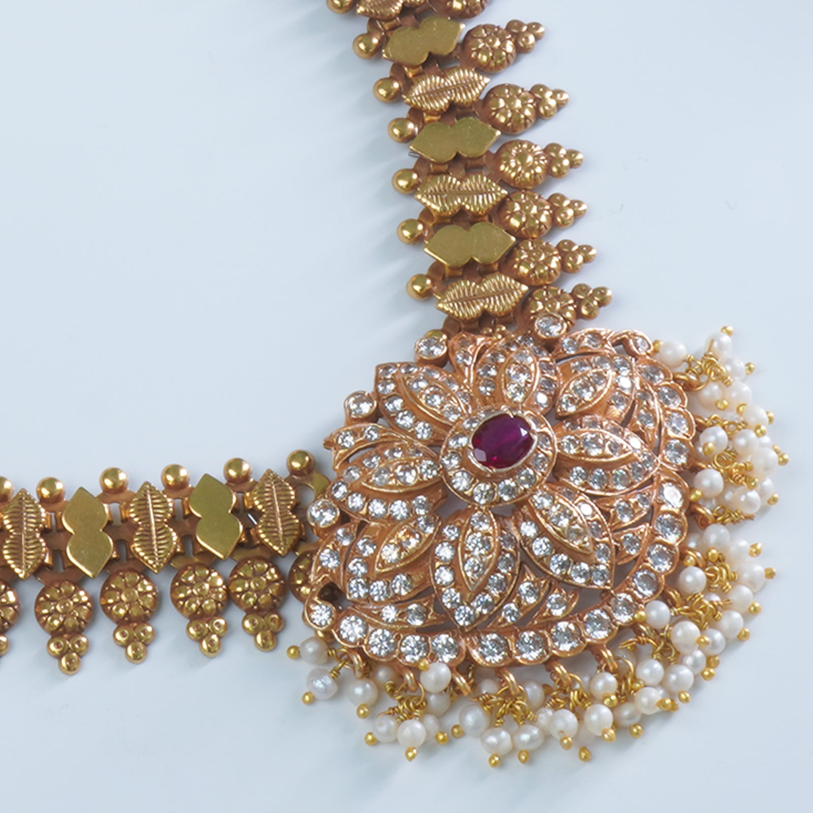 Gold Plated Silver Tanmani Neckkace With Handmade Chattai Pieces