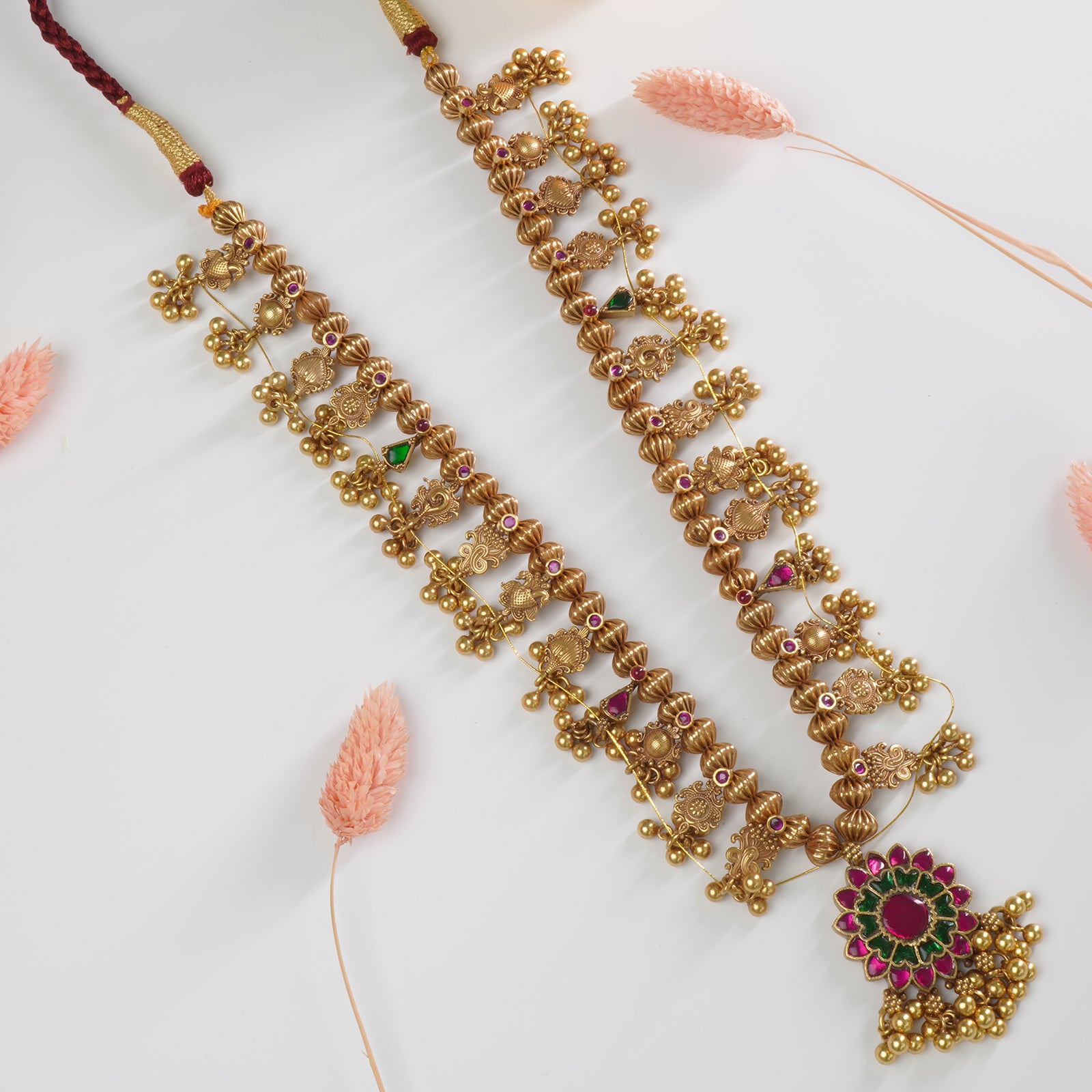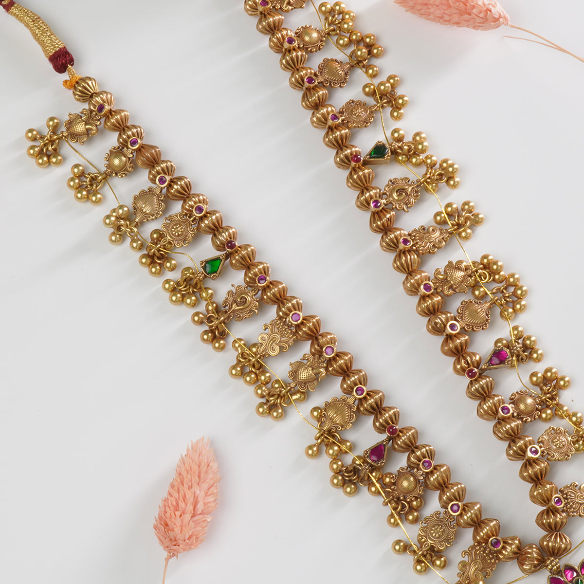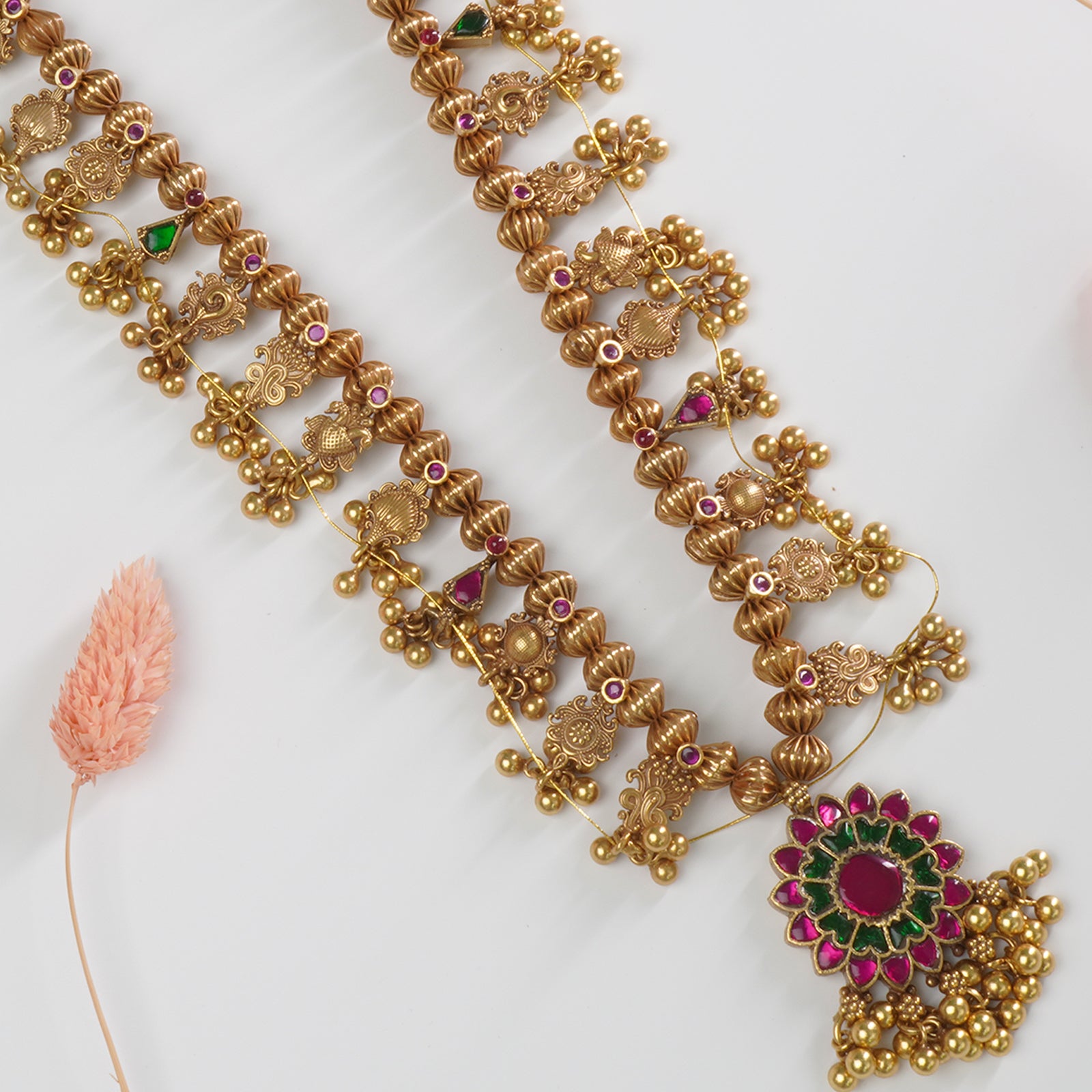 925 Silver Kolhapuri Saaj Antique Gold Finish With Kundan Fusion