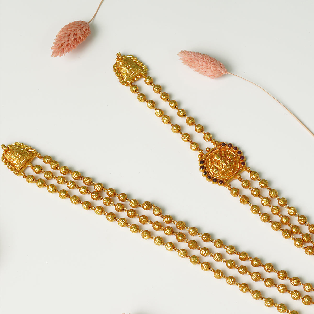 Pure 925 Silver Gheru Gold Plated 3 Layer Laxmi Necklace Side Pendant Design