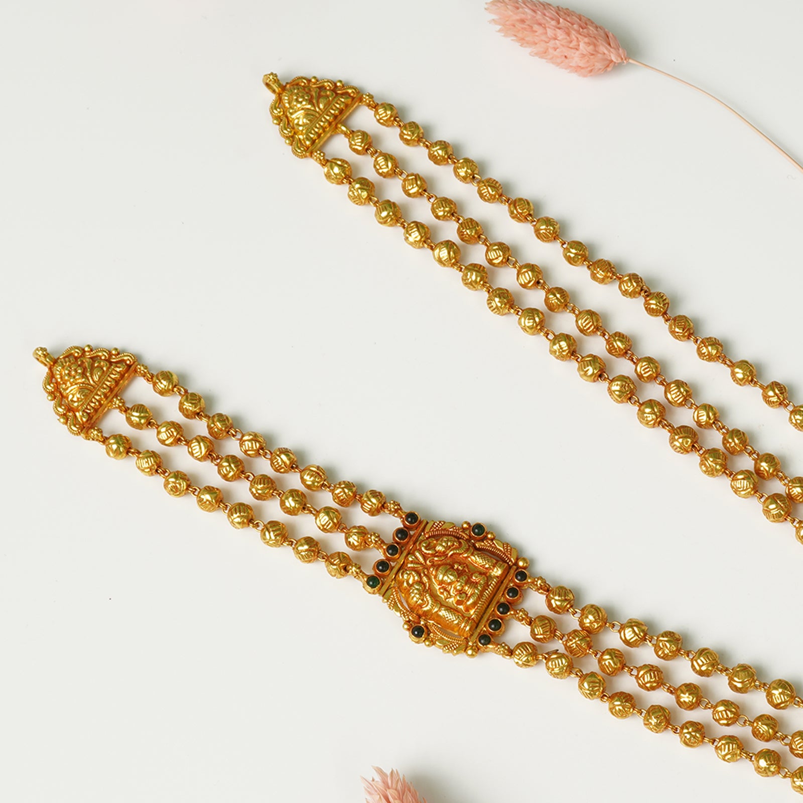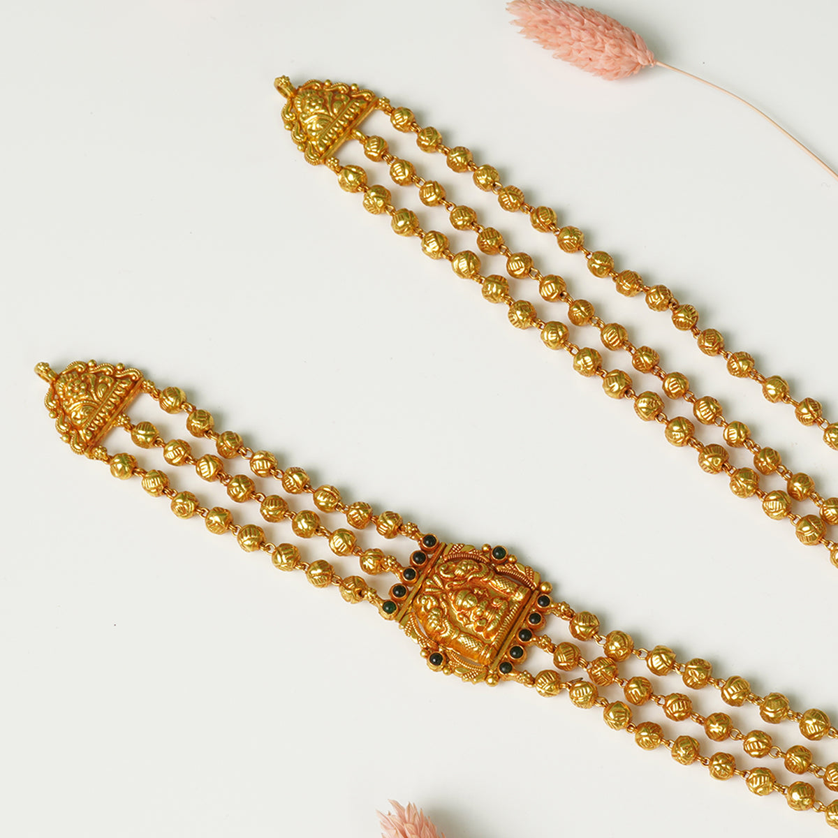 Pure 925 Silver Gheru Gold Plated 3 Layer Laxmi Necklace Side Pendant Design Online