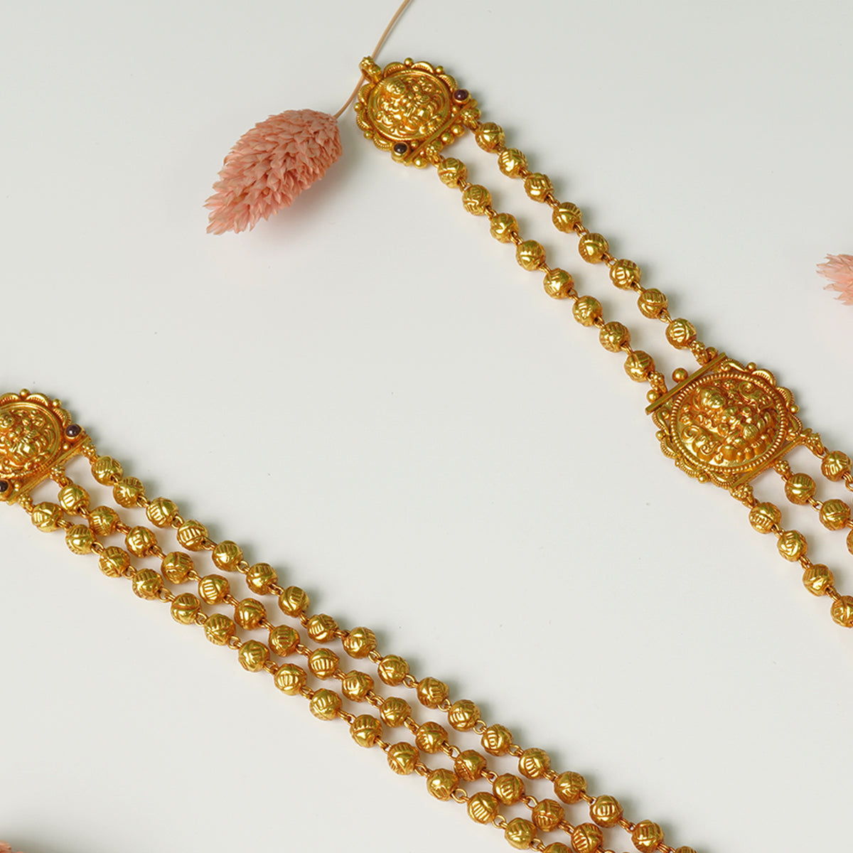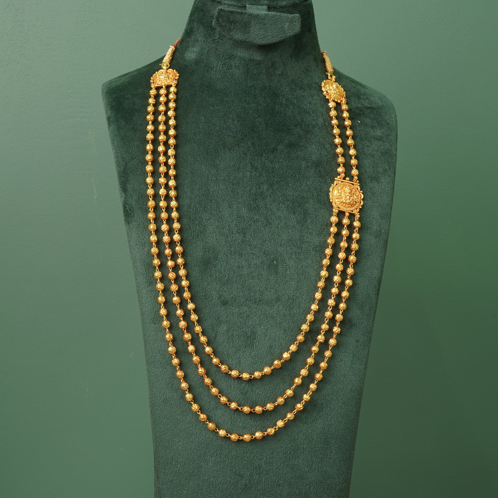 Pure 925 Silver Gheru Gold Plated 3 Layer Necklace Side Pendant Design