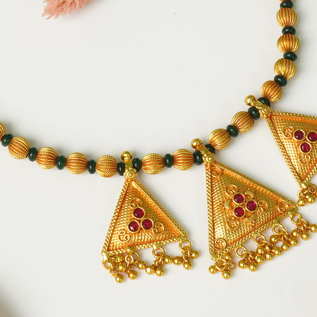 Pure 925 Silver Gheru Gold Plated Tribal Necklace