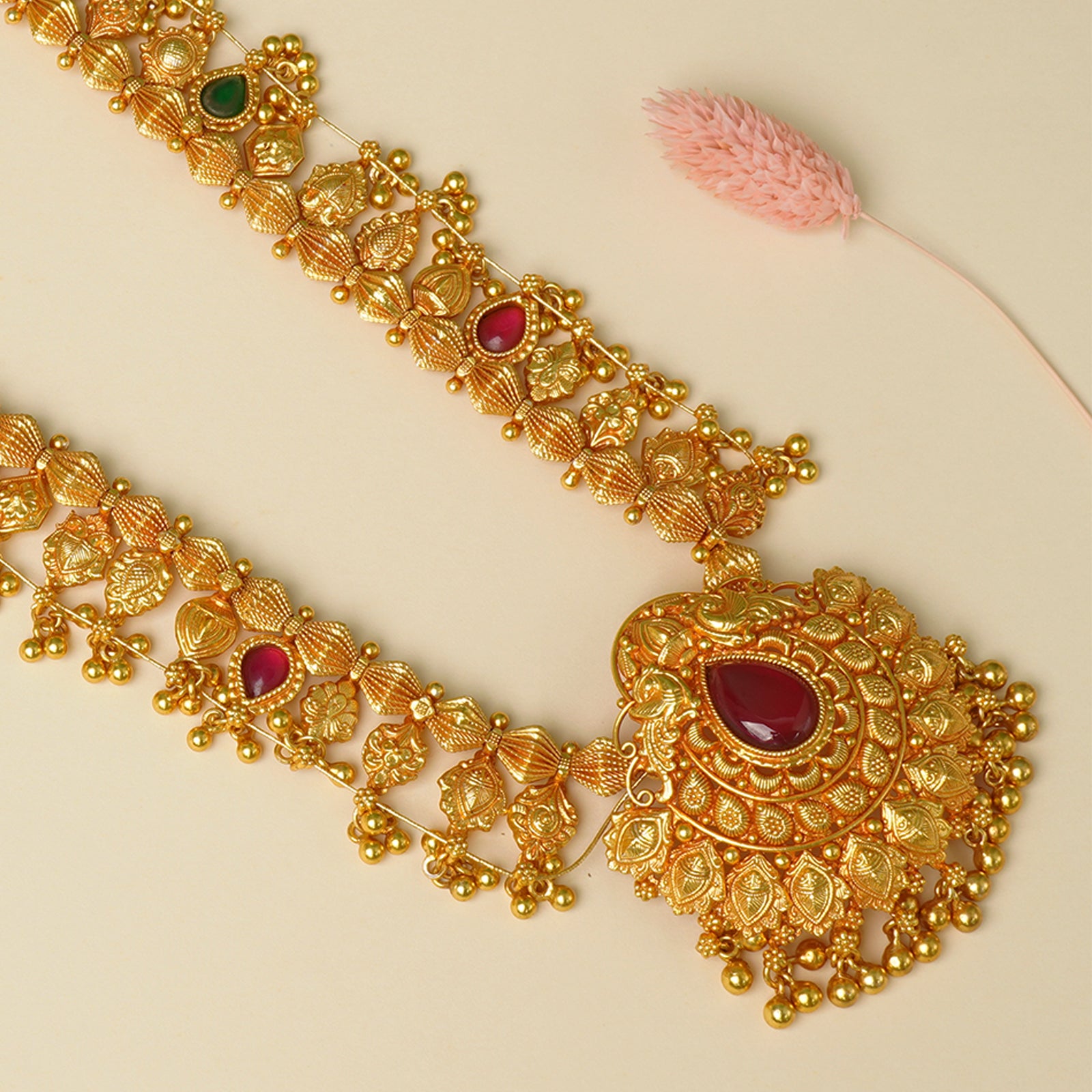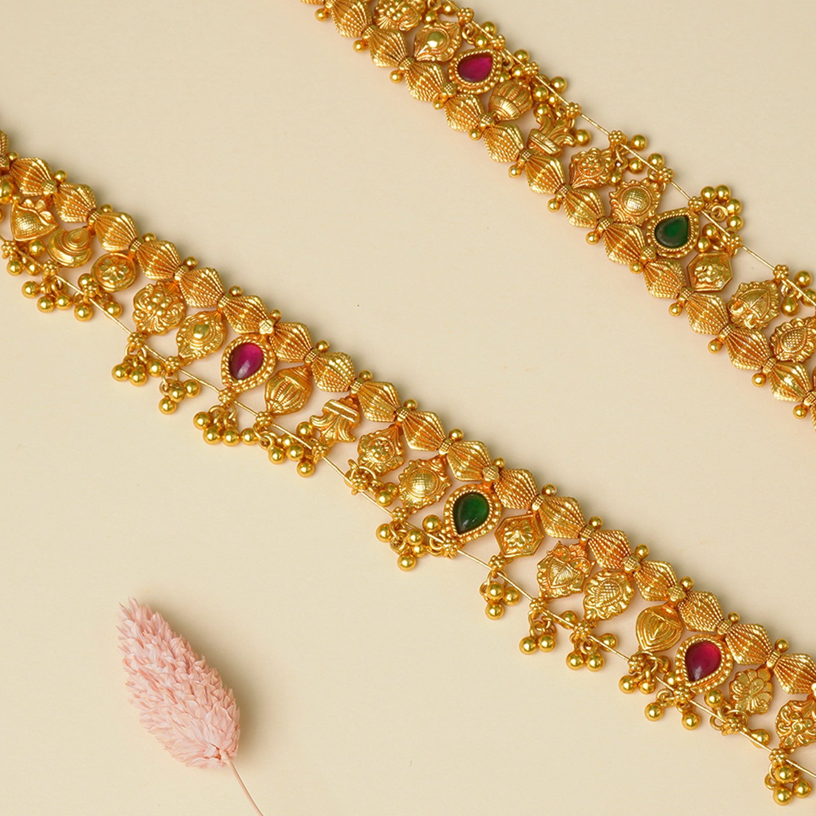 Pure 925 Silver Gold Plated Gheru Kolhapuri Saaj Necklace Design